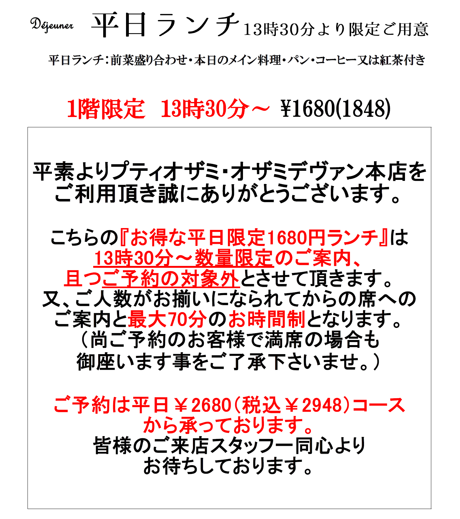 1階限定 13H~ランチ¥1680(税抜)
